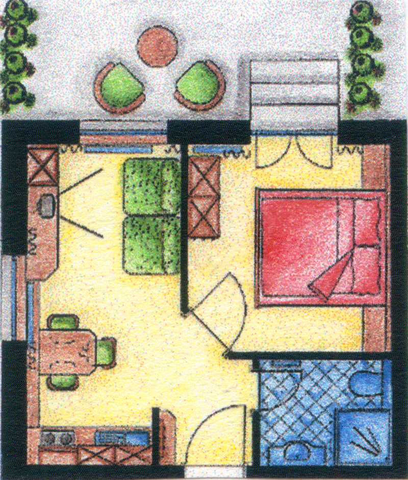 Für 2 Personen im Parterre, 35 qm, Terrasse mit Zugang zum Garten.